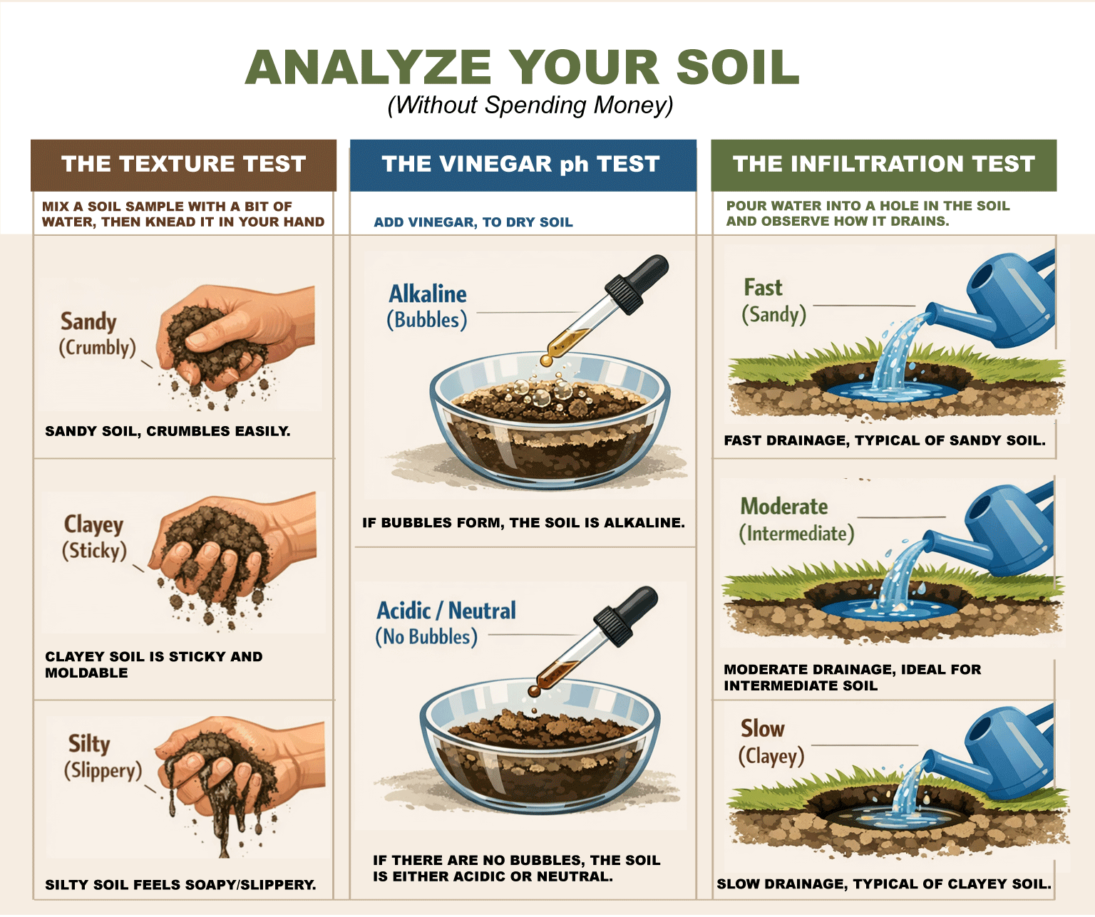 - Your soil is unique. It’s history and geography make it so. And because it’s unique, and because understanding your soil is at the heart of your garden’s health – you do well to get to know it. The best way to know it, is to test it. Yourself! With your very own eyes and hands and nose – it’s that easy! Kathy Irvine’s Edible Backyard. See Reference